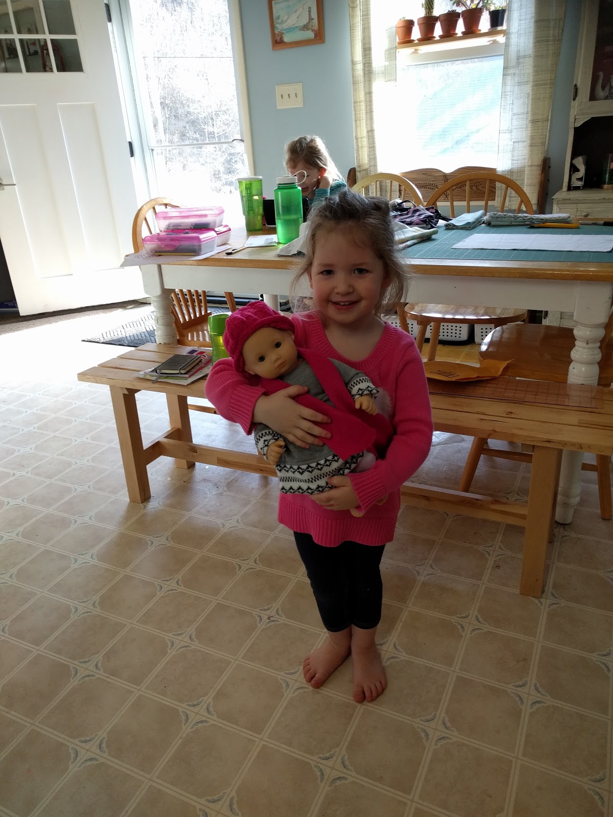 We are all looking forward to the warmer days, where she can ride her new scooter on the road with her sisters for sure! Kaylee also loves to play with her baby dolls, and will come up with elaborate stories by herself, which is highly entertaining to me to watch.